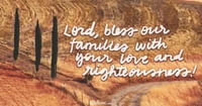 In Your beautiful book of Psalms, chapter 103 and verse 17, You give us this wonderful promise, “From everlasting to everlasting, the Lord’s love is with those who fear him, and his righteousness with their children’s children.” What better promise could we receive from You in the autumn of our lives than to see our children and children’s children blessed with Your love and righteousness? We ask for Your hand of blessing on us as well. Bless us with strength to be there for those we love, and wisdom to know what to say to bring comfort, encouragement, and sometimes difficult truth. We will need Your patience as we wait for Your perfect will and way in each of our loved one’s lives. We are so grateful, Lord God.